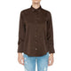 A button down long sleeve shirt in a polyester satin woven fabrication