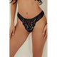 Floral Lace & Mesh Thong in Black