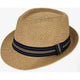 Brown & Black Band Straw Trilby Fedora Hat in Brown