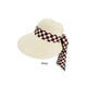 Checker Ribbon Straw Peak Hat in Beige Ivory