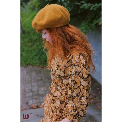 Wool Beret Hat Dark Mustard