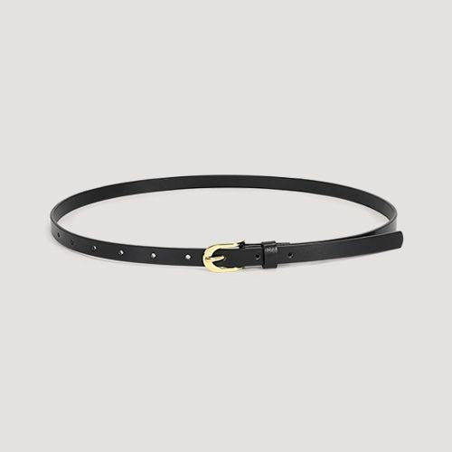 Slim Black Belt: Thin black belt crafted for a polished, versatile look suitable for any outfit.