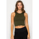 High Neck Crop Cotton Tank Top in Olive