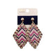 Diamond Shape Wood & Chain Earrings Zig Zag Pink