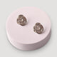 Button-style earrings featuring sculpted rose motifs with layered petal detailing for elegant, dimensional styling.