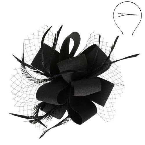Feathered Loopy Bow Fascinator in Black
