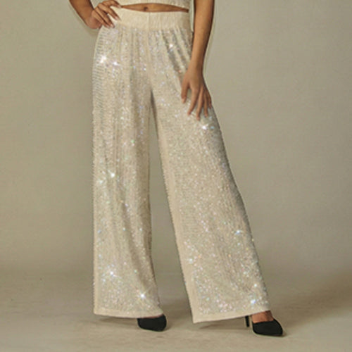 Elastic waistband pull on Rhinestone Wide leg pants