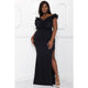 Plus Size Ruffle Bust Off Shoulder High Slit Maxi Dress in Black