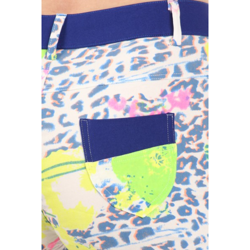 The 4 pocket Hybrid Leopard design with solid color blocks fashion shorts. These shorts have detail printed belt loops, zip fly, and button enclosure.