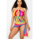 Cut-Out Halter Bathing Suit & Sarong 2pc Co-Ord Set in Multi