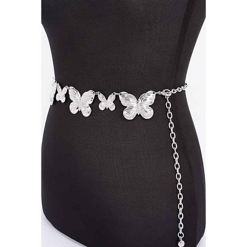 * Elevate your style with the "Multi Butterfly Chain Belt". This exquisite belt features a stunning butterfly design that adds a touch of elegance and whimsy to any outfit. Perfect for those who want to make a statement, this multi butterfly chain belt is a must-have accessory for fashion-forward individuals.