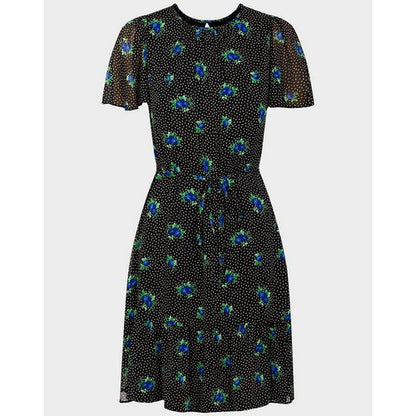 Peacocks Polka Dot Floral Tea Dress Black