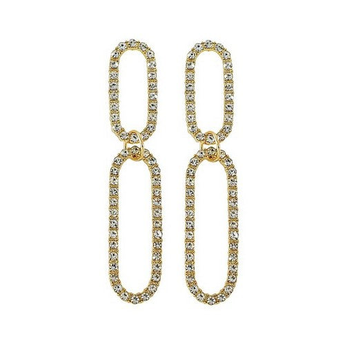 Elegant double-drop earrings featuring linked oval frames encrusted with clear rhinestones for high-impact sparkle.