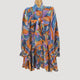 Pussy Bow Bell Shape Blouse in Blue & Purple Print