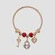 Rhinestone Lock & Key Stretch Charm Bracelet in Gold Red