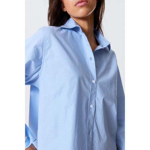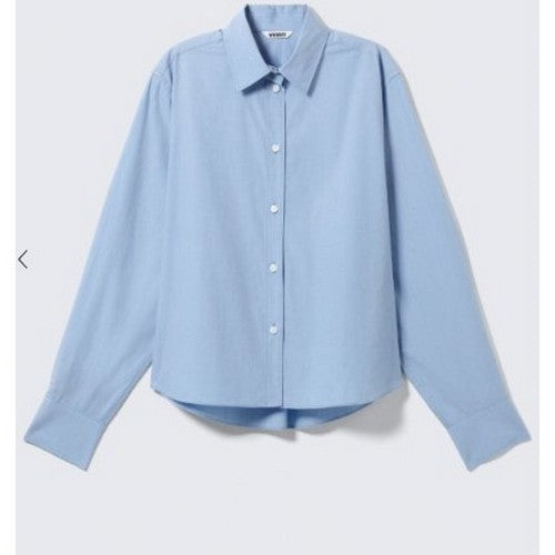 A slightly cropped shirt crafted from soft cotton. Designed with a relaxed fit, it features a pointed collar, a button-up front, and long sleeves with buttoned cuffs. Finished with a curved hemline.Crisp Light Blue Finish: A timeless, professional shade that adds freshness to your workwear rotation.