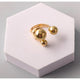 Open Orb Design: Features a sleek open band with polished gold orbs at each end for a modern, minimal statement.