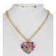 Rhinestone Heart Gold Necklace & Stopper Earrings Set in Multiolour