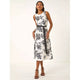 Roman Rose Print Fitted Maxi Dress in Black & White