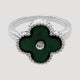 Enamel & Rhinestone Quatrefoil Silver Ring in Green