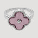 Enamel & Rhinestone Quatrefoil Silver Ring in Pink