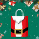 Small gift bag silhouette styled to resemble Santa’s outfit with red base, white beard trim, and gold buckle detail