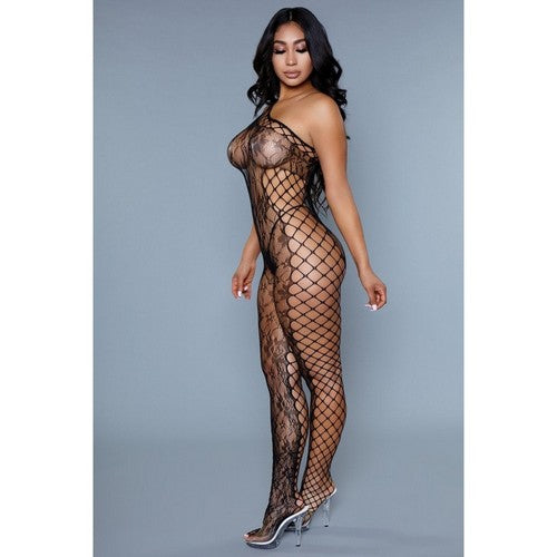 Turn up the allure with this Keep Up Tonight captivating floral lace and fishnet contrast one-shoulder bodystocking catsuit. Perfect for making a bold statement, this daring piece combines the elegance of floral lace with the edginess of fishnet detailing, creating a striking contrast.