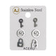 Stainless Steel 3pc Love Lock & Key Stud Earring Set Silver