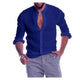 Men's Fashion Pocket, Solid Color, Cotton Linen, Stand Collar, Long Sleeve Shirt