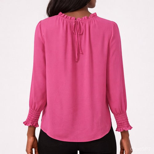 Elegant women’s blouse featuring a classic tie-neck detail