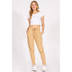 These are casual high-waisted jogger pants in a soft designed for both comfort and style. Featuring a relaxed fit with tapered legs, they include an elastic waistband with an adjustable drawstring tie for a customizable fit. Side pockets add functionality, while the lightweight fabric makes them perfect for everyday wear. Pair them with a crop top and sneakers for an effortlessly chic and laid-back look.