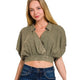 WASHED LINEN BANDED HEM SURPLICE CROPPED TOP