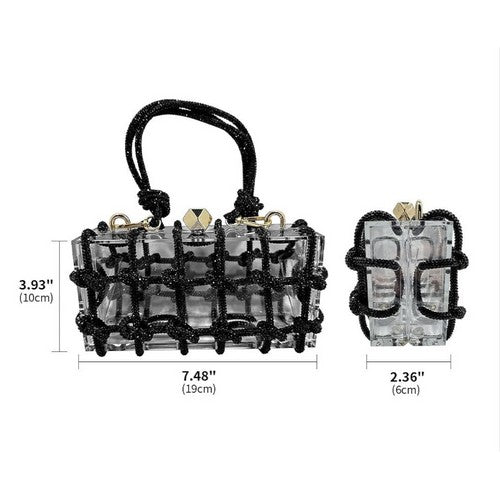 Acrylic Clear Clutch With Knotted Rhinestones in Black